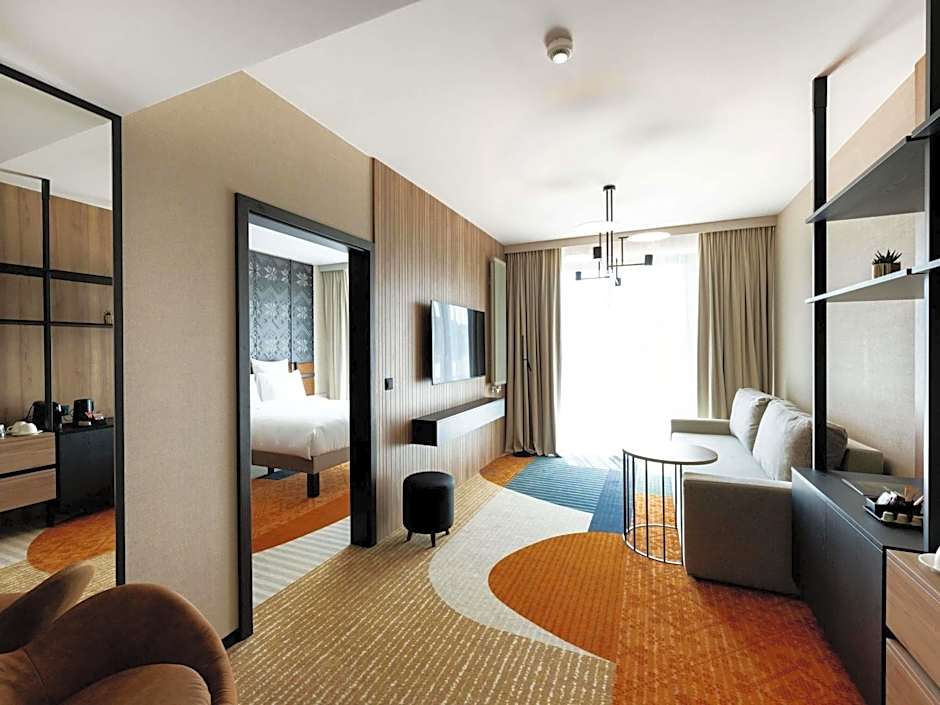 Executive Suite with 1 double bed, Sofa, balcony, extra room, mountain view.